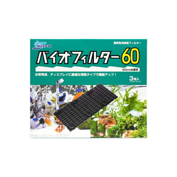 バイオフィルター 60 3枚入 アクアリウム用フィルターのレビューが17件。満足度評価なし。q&aが0件。バイオフィルター 60 3枚入 アクアリウム用フィルターに関するレビューを読んだり、ギモンを解決したいときは、「ヨドバシコミュニティ」で。ニッソー バイオフィルター60(緑パケ) 60cm水槽用底面フィルター 関東当日便の通販商品の最新情報と価格比較。本サイトは、通販ショッピング最大手の楽天市場の最新情報をお伝えします。現在位置 トップページ > 飼育用品 > ろ過装置・フィルター > 底面式フィルター > バイオフィルター60 バイオフィルター60 写真